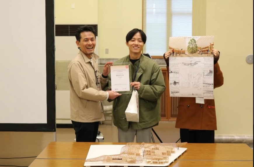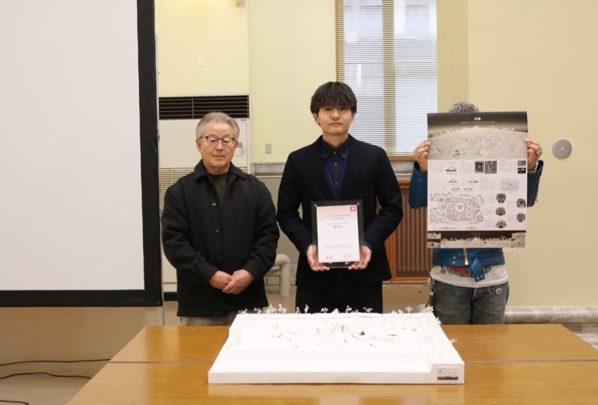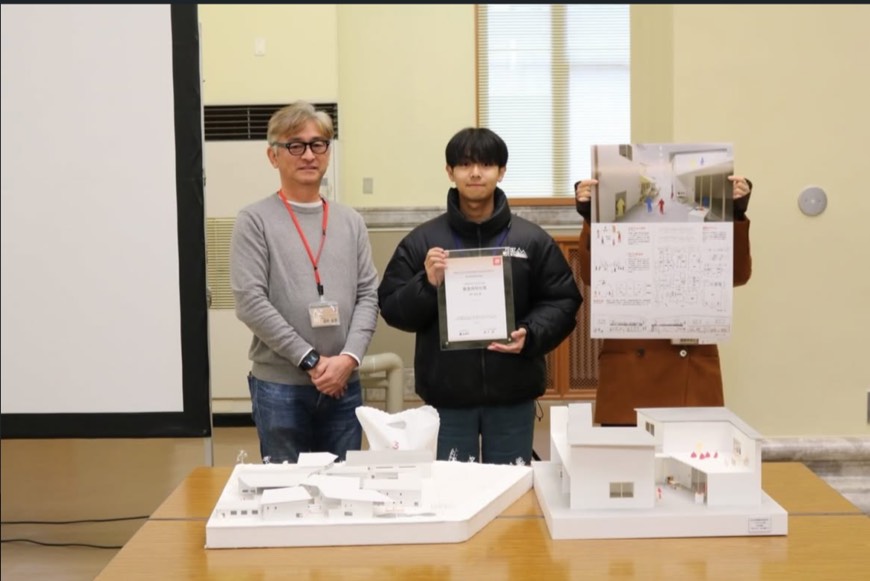 本コンペは、大学の講義で取り組んだ設計作品を基に、学生の発想力や表現力を競うものです。令和7年12月19日の一次審査を通過した後、令和8年1月10日・11日に実施された二次審査では公開プレゼンテーションが行われ、高い評価を受けました。受賞された皆さん、おめでとうございます。