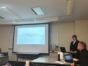 審査委員6名(オンライン1名),現地15名とオンライン15名の合計30名の参加のもと,約50分にわたり申請者によって発表がなされ,その後,質疑応答がおこなわれた。